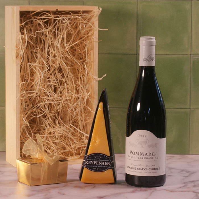 Wijngeschenk met chocolade en kaas Pommard